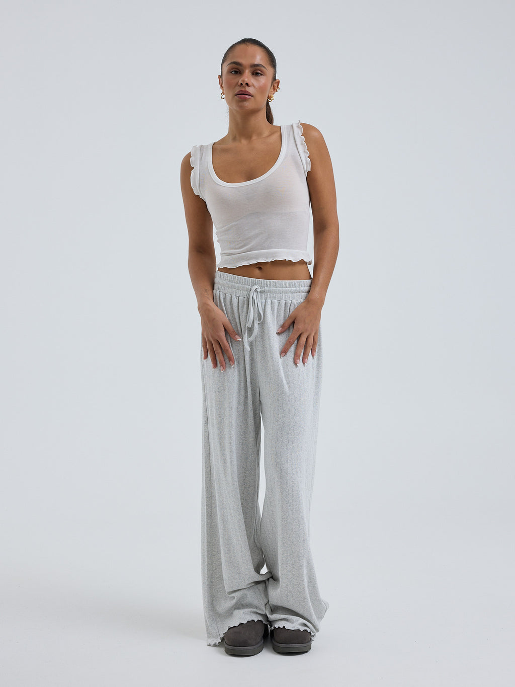 Crop top with low neck drop.